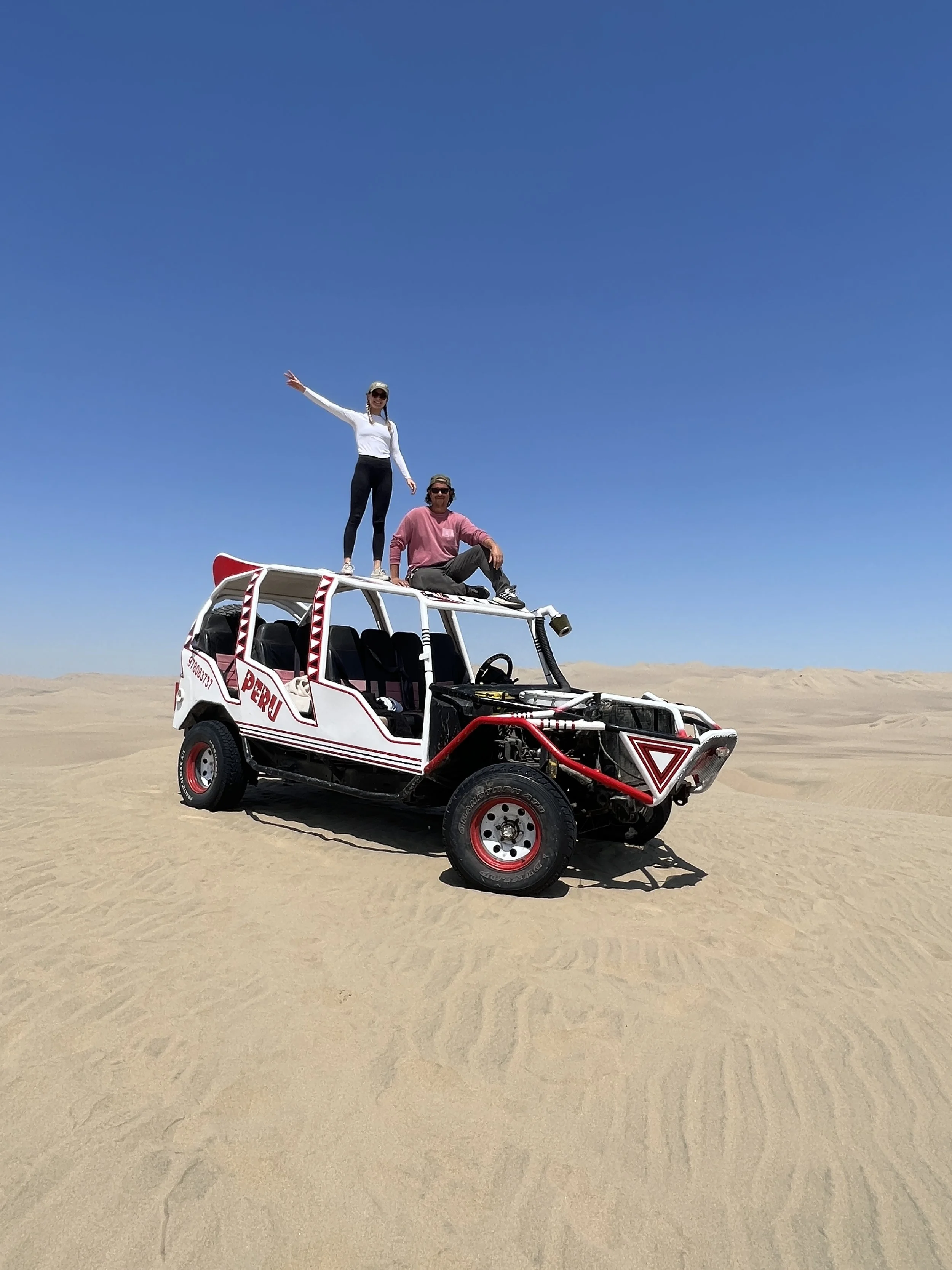 As soon as we crossed the border into Peru, the rolling green hills and mountains dropped away and we drove through a desert for three days. Garbage was littered as far as the eye could see and political messages were graffitied on every structure. After driving through 36 tunnels in a winding canyon, we made our way to the stunning snow capped mountains and turquoise lakes that Peru is famous for. In the Sacred Valley, we stayed in Ollantaytambo, the only Inca town that’s still inhabited, making it feel like we traveled back in time–and we were in awe when we finally arrived to see Machu Pichu in all its glory. We splurged on the “party train” on the way back where we got to take part in traditional dances while knocking back a few drinks! We explored the major cities of Cusco, Lima and Arequipa. We dune-buggied at top speed in Huacachina, a tiny desert oasis near the coast, and lunched on the famous floating islands at Lake Titicaca. More often than not, the menus included alpaca (which we tried) and “crunchy” guinea pig (which we didn’t try). From the roads, Cooper barked at alpaca, chinchilla, vicuña and Andean condors. We spent most of our month in Peru above 8k feet and reaching over 16k feet in altitude, where the sand turned pink and it felt like we were on mars.